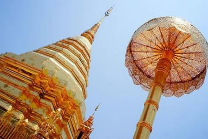 早餐后游覽【珍寶苑】是具有認(rèn)證ISO9001質(zhì)量鑒定保證的珠寶展示中心。泰國的珠寶工廠歷史悠久,規(guī)模巨大,正規(guī)。如果說鉆石的切割技術(shù)歐洲第一的話,那泰國的珠寶工藝更可謂舉世無雙。之后前往【泰國特產(chǎn)乳膠展覽中心】橡膠是泰國的主要產(chǎn)業(yè)之一。乳膠是天然材質(zhì),取自于橡膠樹的汁液,極其珍貴,因?yàn)槊刻烀款w橡膠樹僅能產(chǎn)出30CC乳膠汁。一個正宗的乳膠制品至少需要一天到一天半的時間完成制作,是相當(dāng)費(fèi)時且材料珍貴的一種產(chǎn)品。天然乳膠床墊、枕頭、抱枕、腰枕、坐墊、汽車頭枕、手套等是自用及贈送親友的最佳禮物。前往【泰絲店】,泰絲是泰國最著名且最名貴的商品,以手工織制馳名世界,品質(zhì)出眾,質(zhì)地輕柔,色彩艷麗,富有特殊光澤,圖案設(shè)計富于變化,是極具東方特色的織物。之后前往【雙龍寺】沿著306個臺階攀登而上來到清邁最著名的雙龍寺,一座由神像選址,充滿傳奇色彩之著名的佛教避暑勝地,寺內(nèi)金璧輝煌,香火鼎盛,寺廟里埋有佛主的舍利子,是虔誠佛教信徒向往朝拜的地方。我們也可以在寺廟后的觀望臺居高臨下遠(yuǎn)眺清邁市全景。素貼山上著名的佛教勝地, 此廟座落在海拔1053公尺的高山上,是一座由白象選址、皇室建造,充滿傳奇色彩的廟宇,由于山路兩旁有兩只金龍守護(hù),所以叫雙龍寺 。結(jié)束后去往國際五星Siripanna酒店享用【Siripanna下午茶】當(dāng)您一邁入Siripanna度假別墅,您將在自然與藝術(shù)中體驗(yàn)到蘭納風(fēng)情,并試穿泰國傳統(tǒng)服裝拍照,在您的假日中感受到猶如家人般的溫情服務(wù),我們還為您提供舒適的設(shè)備,讓您的閑暇生活更豐富。晚餐安排具有泰國傳統(tǒng)文化的【王府風(fēng)味餐】享用晚餐后入住酒店休息。